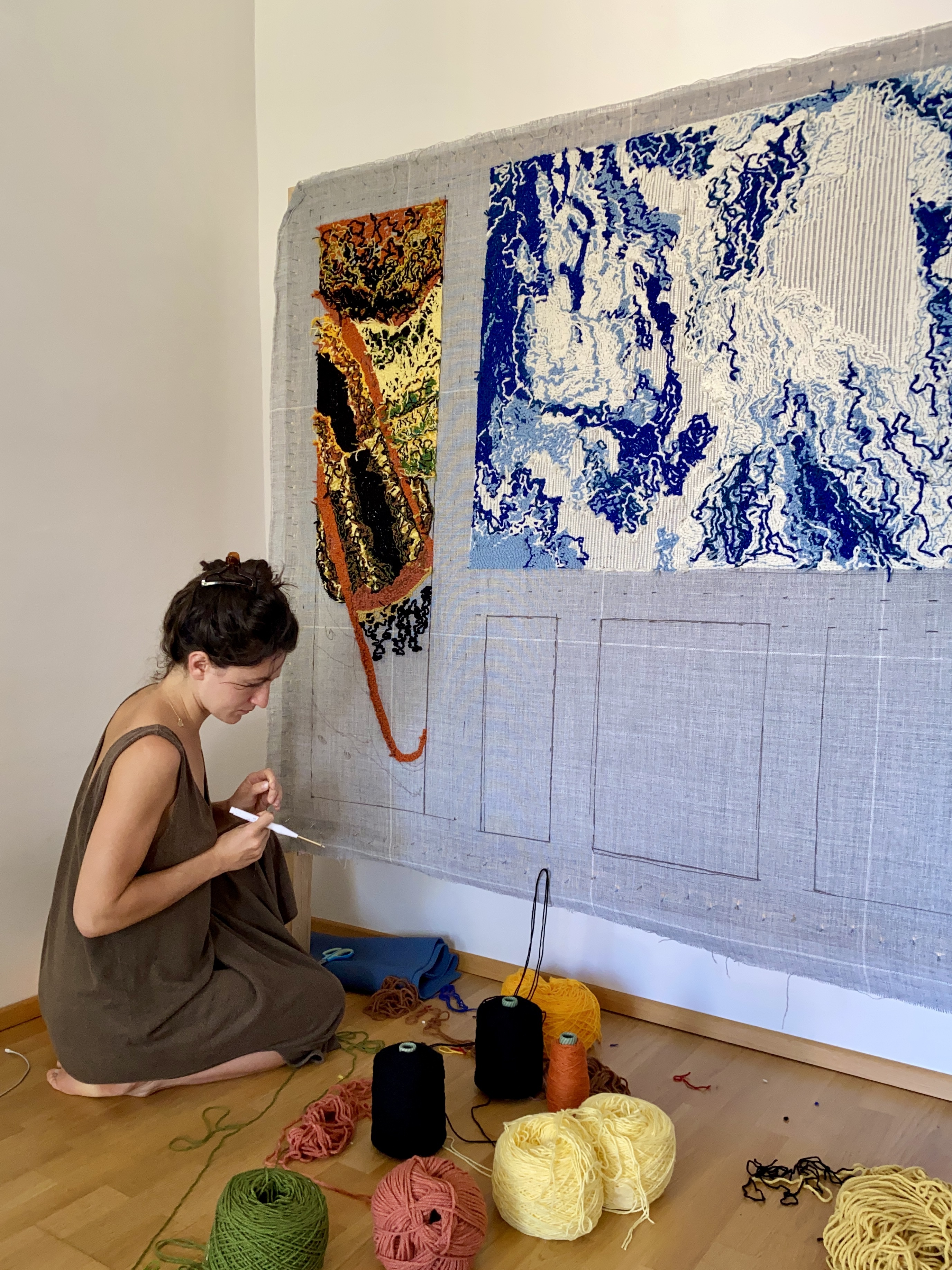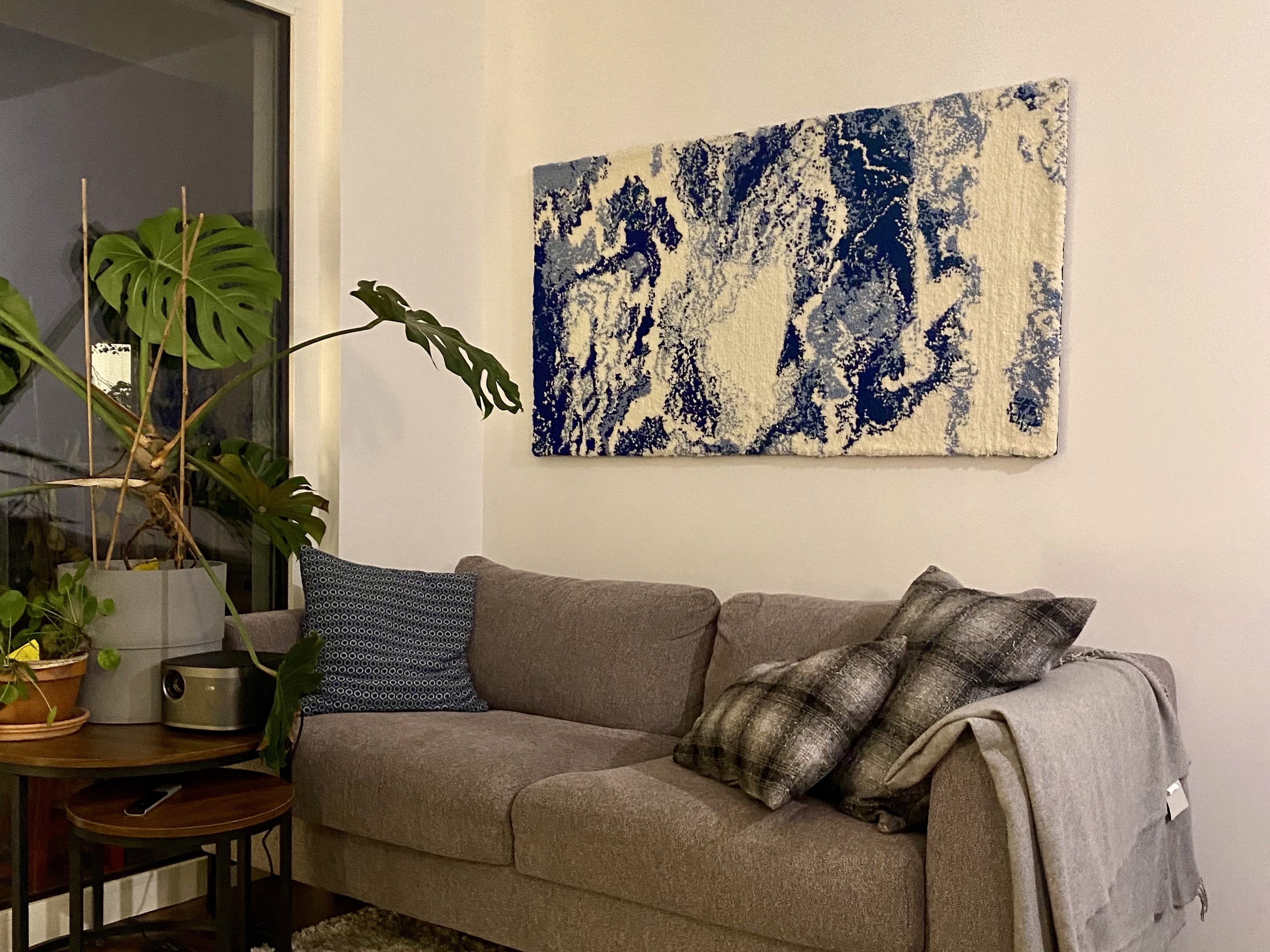 When I got back home I started creating. I made a rug representing Namibias coast, wild waters of the Atlantic Ocean.