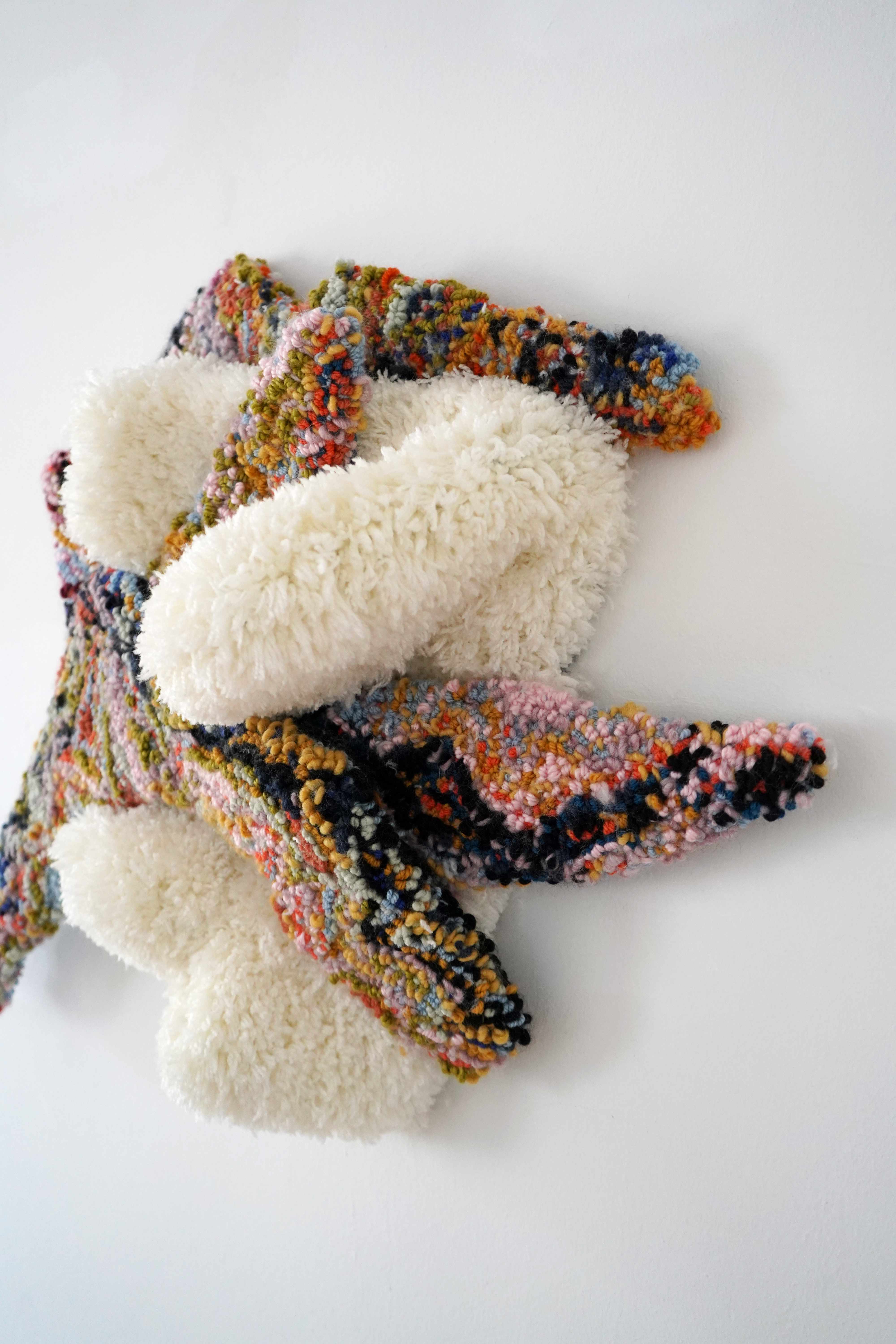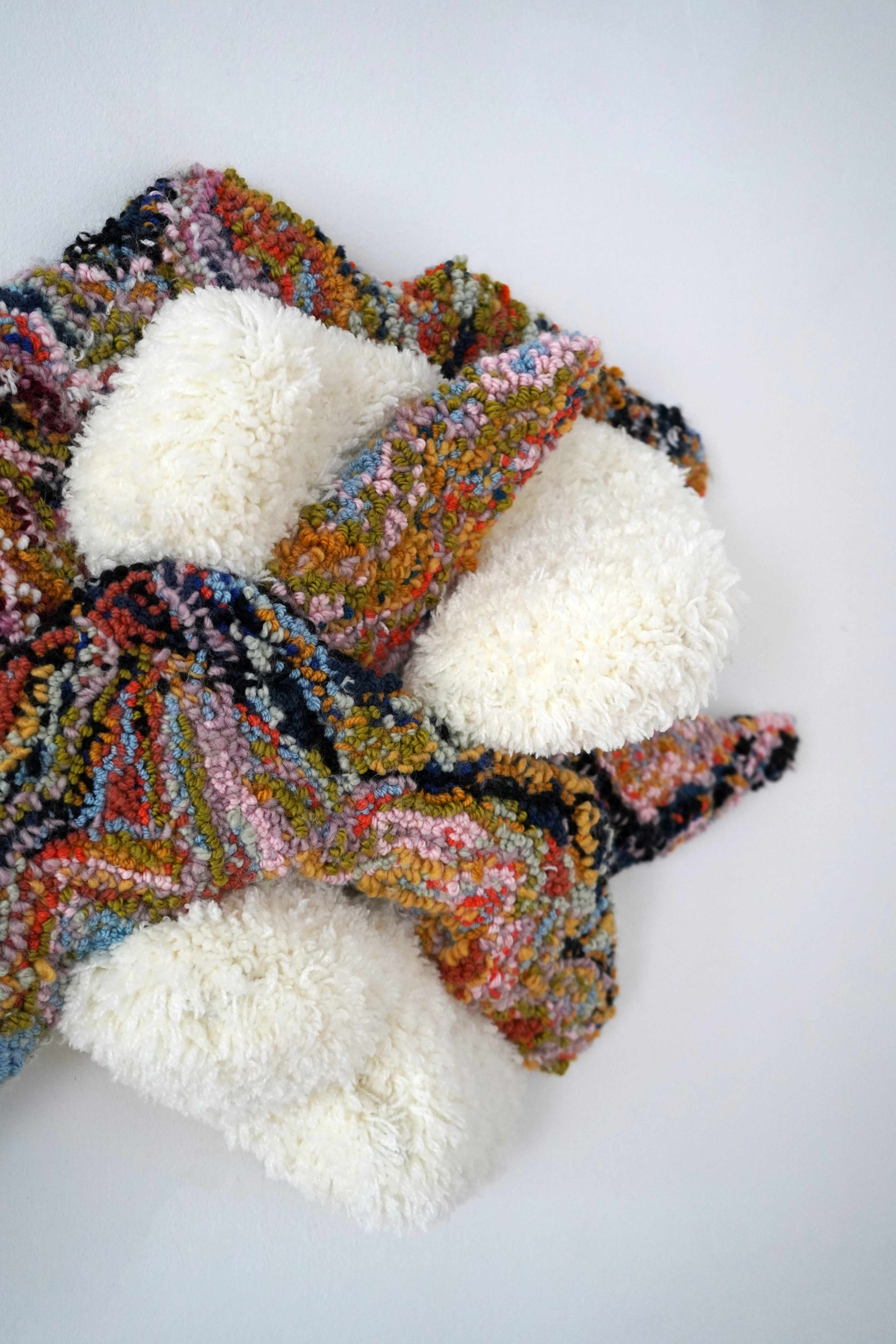 This sculptural wall piece is part of my Georgia series. Its shapes, colours and materials reflect the country’s wild mountain landscapes and its vibrant cultural heritage.