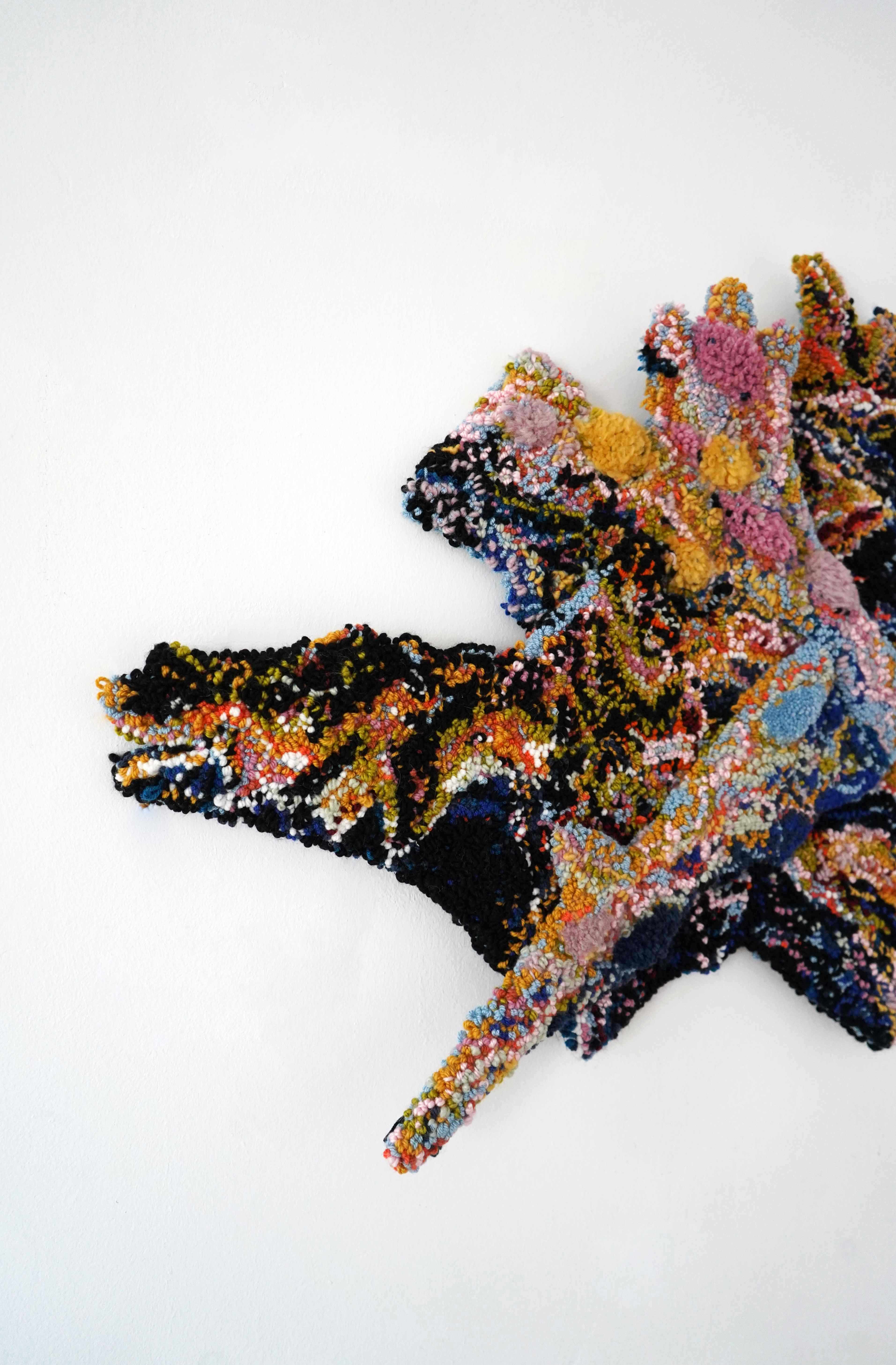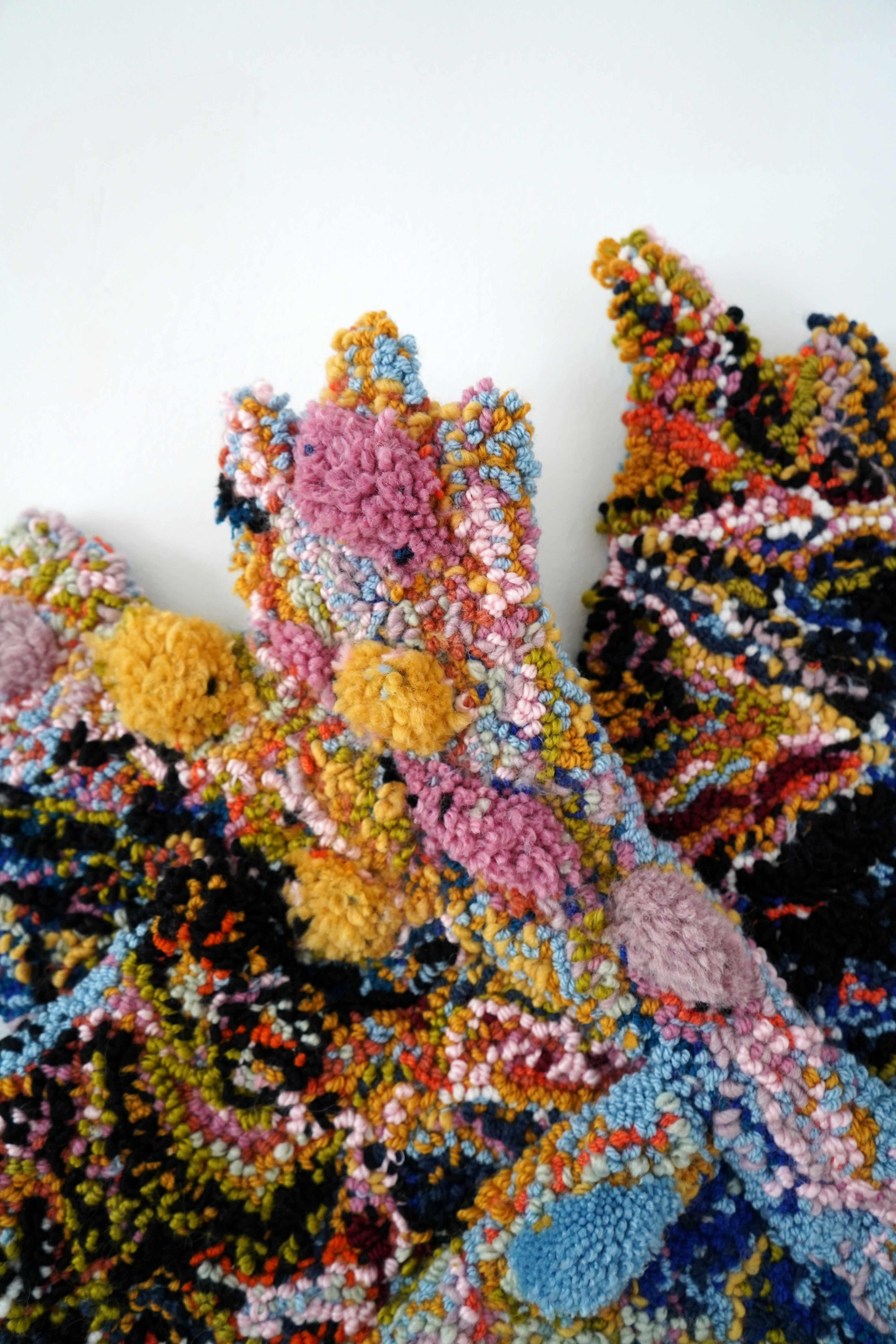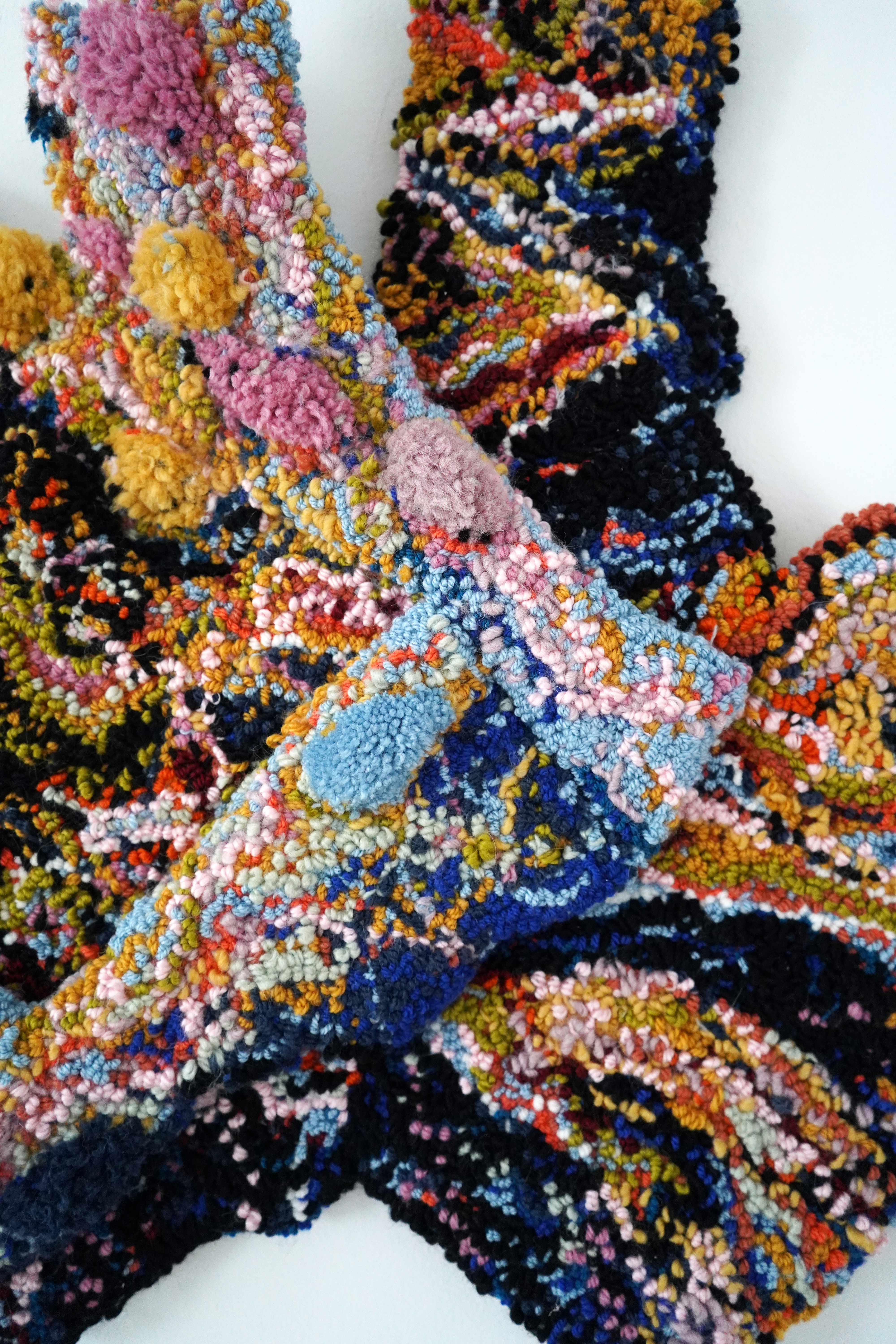 This sculptural wall piece is part of my Georgia series. Its shapes, colours and materials reflect the country’s wild mountain landscapes and its vibrant cultural heritage.